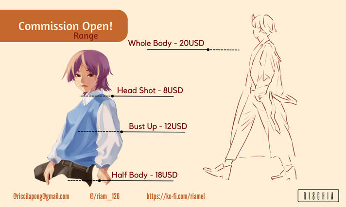 I'm Ricci, a Filipino artist.Currently learning Japanese language as my major. I began my journey as a digital artist since 2021 after being inspired by my best friend and have been doing traditional arts before that. I especially love making fanarts of the characters I like, and also learning body anatomy to improve my skills.